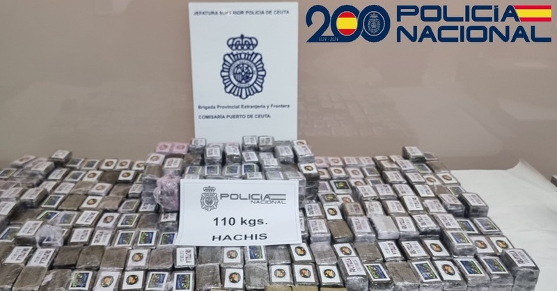 En su vehículo, en el interior de los huecos del equipamiento, se encontró la cantidad de 1.036 pastillas de hachís, que han arrojado un peso total de 110 kilogramos de dicha sustancia estupefaciente