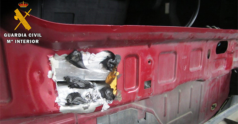 Un detenido y 82 kilos de hachís intervenido que se ocultaba bajo la tapa interior del maletero, que abrieron los agentes para buscar posibles escondites para personas