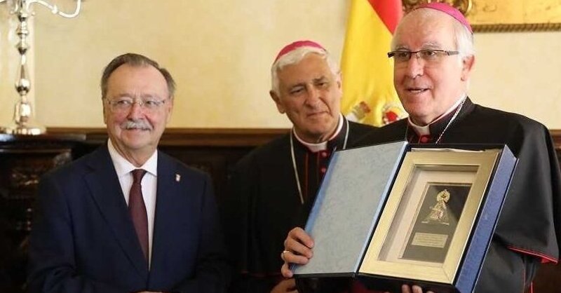 Antes de la misa, durante la recepción, monseñor Saiz ha tenido ocasión de firmar en el Libro de Honor de la Ciudad y el presidente Vivas le ha hecho entrega de una imagen de la Patrona de Ceuta como "muestra de cariño y respeto hacia lo que representa"
